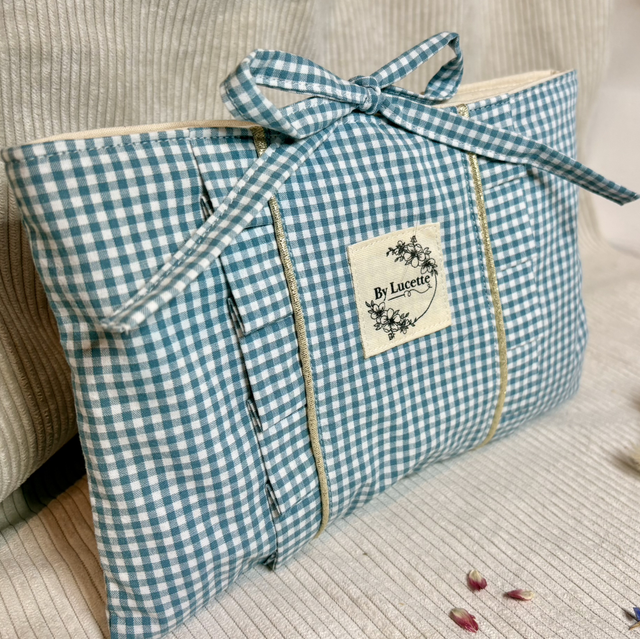 Pochette à livre de poche/liseuse Vichy bleu céladon