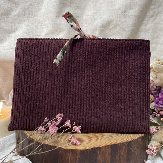 Pochette à livre broché velours bordeaux
